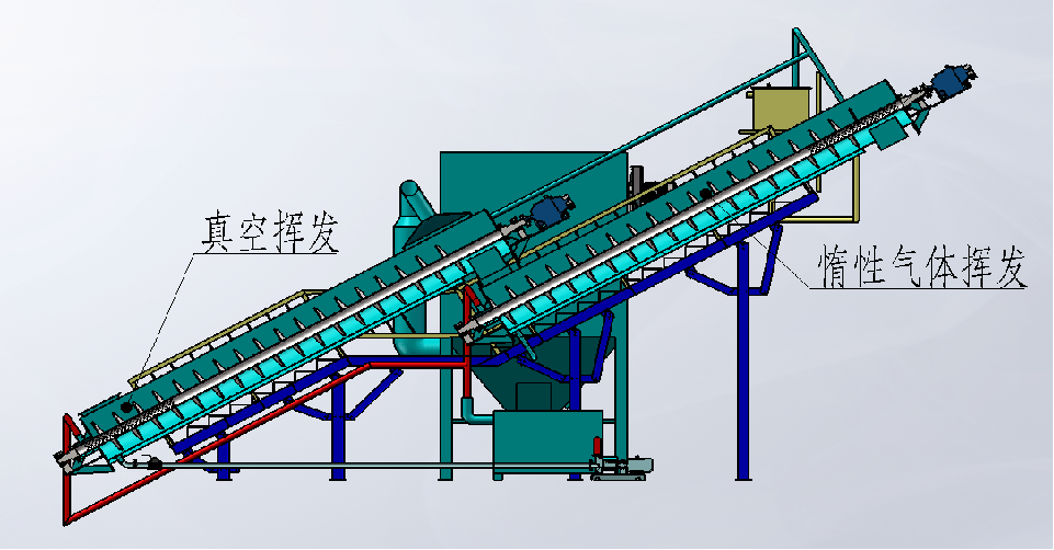 其中拆解破碎后電解液進入熱揮發系統,熱揮發系統可設置雙揮發,電解液貧氧熱揮發熱源是利用帶電破碎物料自身放電發熱和無氧裂解燃燒系統排放的尾氣余熱做熱源的,無需外補充熱源;該設備有溫度表,壓力表,氧氣表。第一次為無氮氣加熱自揮發,可減少揮發使用氮氣量,揮發更充分,二道揮發設備有自動補充加熱氮氣系統和自動抽取揮發氣系統確保含氧量1%以下。自動控溫系統,防爆燃燒系統可防止設備連鎖爆燃燒,提高設備運行安全性,揮發器設備上端設有負壓收集口,可把揮發的廢氣瞬間負壓吸走,揮發設備設計為u型分體式,維修更換方便,使各個功能系統保證設備運行穩定。