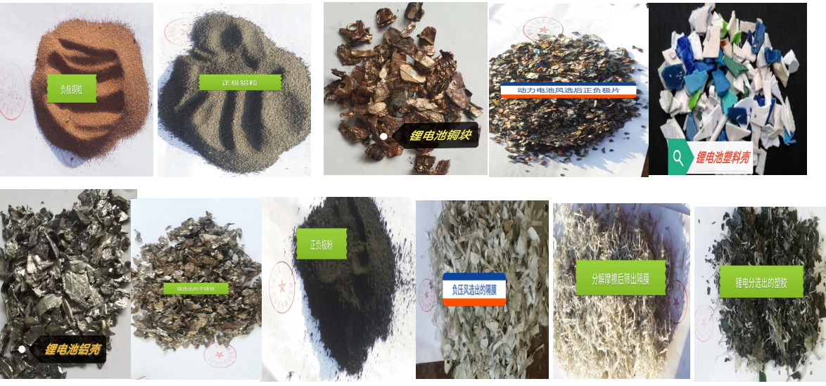 2、綜合分選循環風系:揮發后鋰電物料進綜合分選可把鋰電池分選為4類①磁性物(鐵和鎳)②塑料隔膜③銅塊鋁塊不銹鋼殼體等④正負極片料;極片直接進摩擦脫粉設備,分選風為全循環使用;把少量排出廢氣進裂解燃燒系統進行補充氧用。